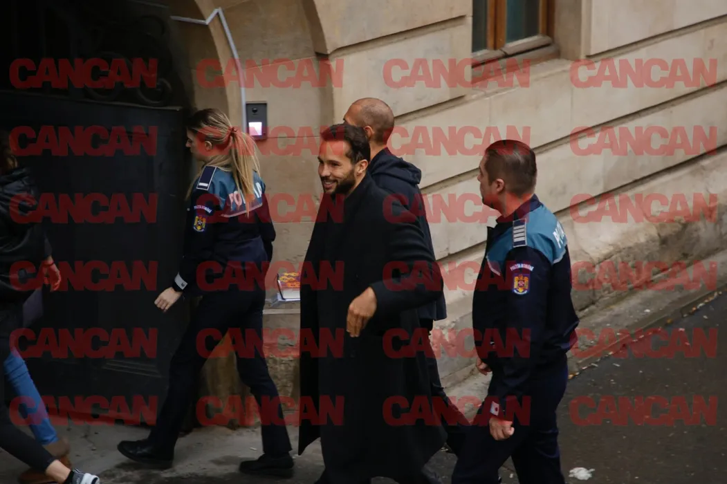 Înainte de a intra în sala de judecată, Andrew și Tistan Tate au fost escortați de o ”sexy-polițistă”/ SURSĂ FOTO: CANCAN.RO
