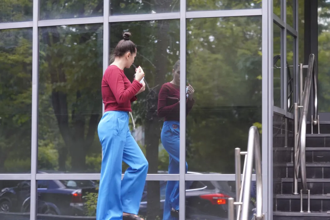 Elena Băsescu și-a verificat ținuta în "oglinda" clădirii
