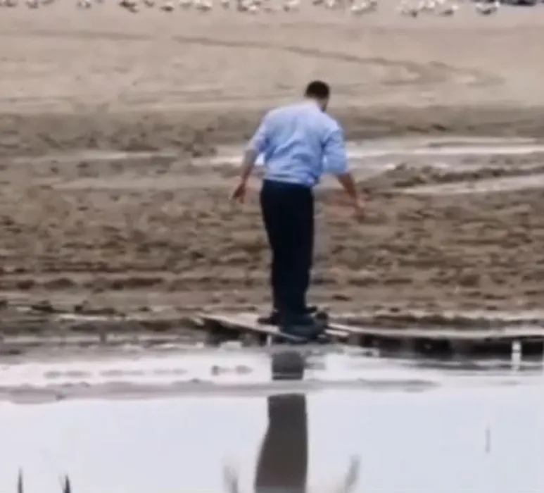 Ei sunt Stan şi Bran din Poliția Română! Unul şi-a suflecat pantalonii ca să poată să scoată maşina împotmolită pe plajă, iar celălalt… VIDEO ireal