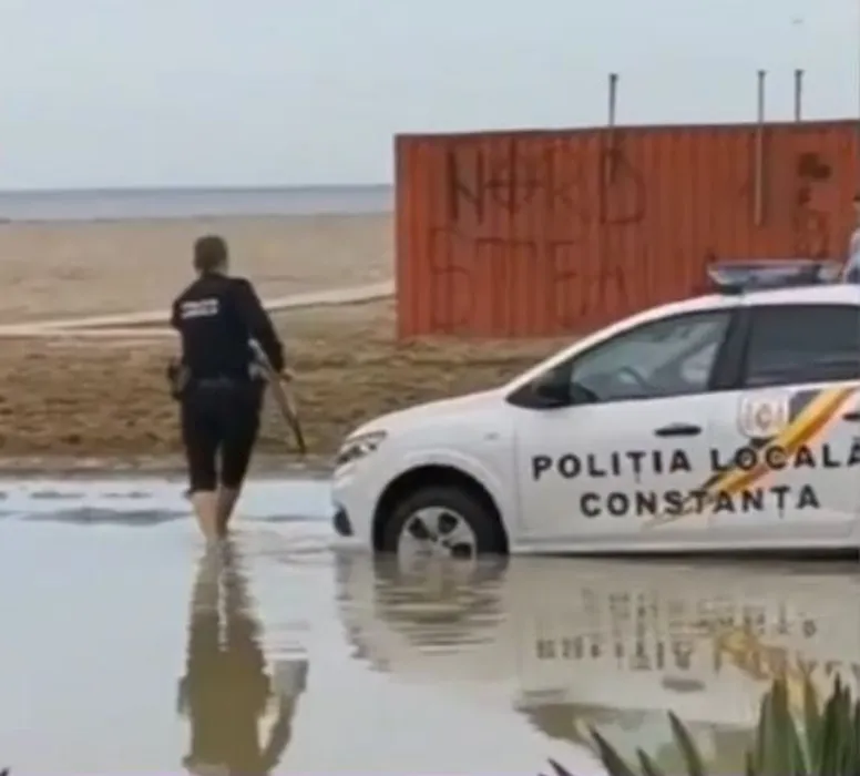 Ei sunt Stan şi Bran din Poliția Română! Unul şi-a suflecat pantalonii ca să poată să scoată maşina împotmolită pe plajă, iar celălalt… VIDEO ireal