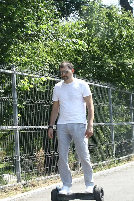 Andrei Ștefan, fiul vitreg al lui Dinu Patriciu, la plimbare cu hoverbord-ul
