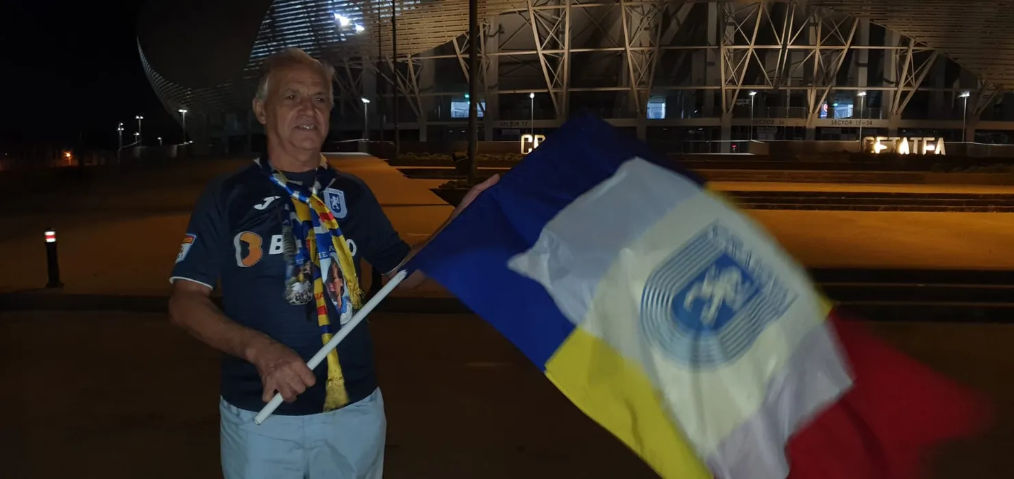 El este cel mai „adevărat” suporter al Craiovei. A venit de la 50 de kilometri doar ca să stea la poarta stadionului