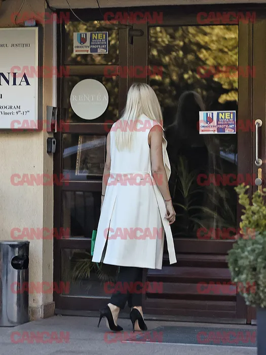 Elena Udrea se îndreaptă către o clădire de birouri de notariat
