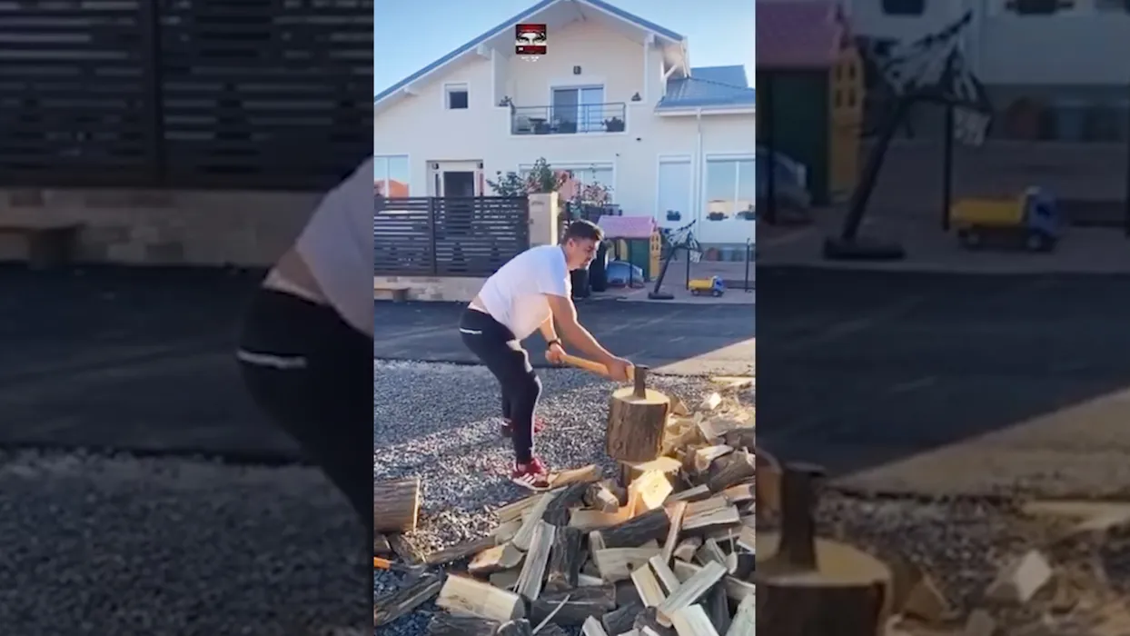 Elena Udrea îl “antrenează” ca în “Legiunea străină” pe fostul manechin. Nici lemnele nu îi „rezistă” lui Adrian Alexandrov