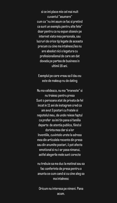 Mesajul postat de Ema Uta pe Insta Story. Foto: Instagram