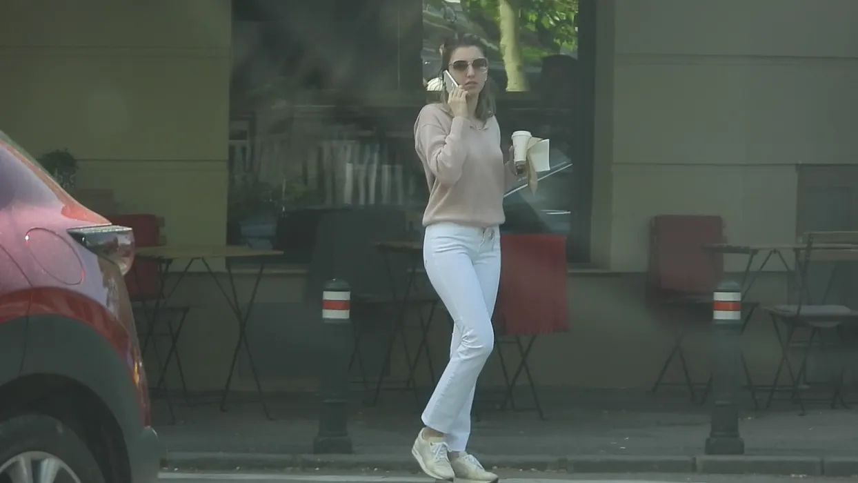Alexandra Becali, cu telefonul la ureche și cafeaua în mână (Foto: CANCAN.RO)