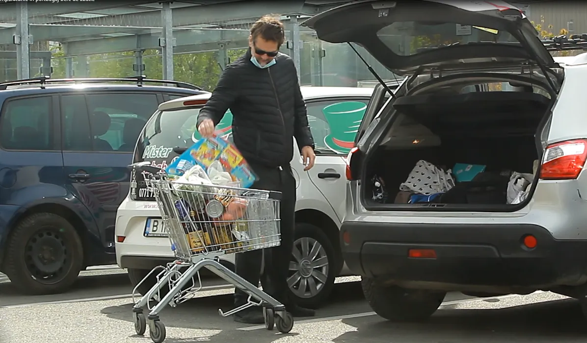 Florin Piersic junior a ajuns cu produsele cumpărate la mașină și va începe să golească tot coșul