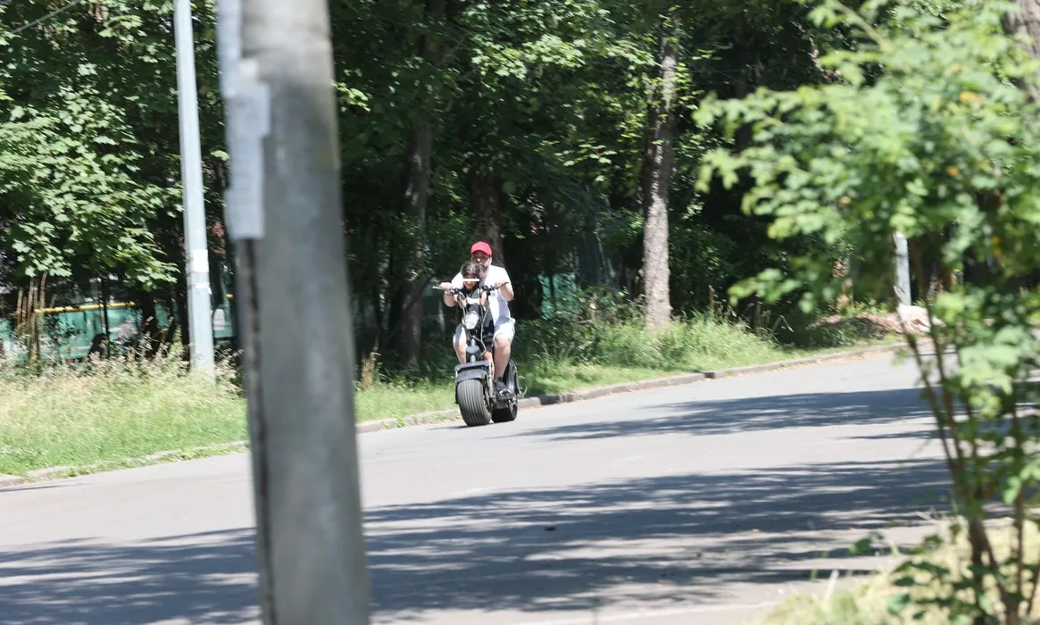 Florin Salam și micuța, pe scuter, le ajung din urmă pe Roxana Dobre și pe prietena ei (Foto: CANCAN.RO)
