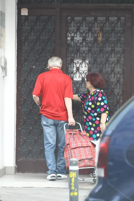 Nicolae Văcăroiu, alături de soția lui, duce căruciorul de cumpărături