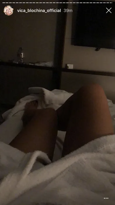 Vica, în halat, în pat, la Marriott