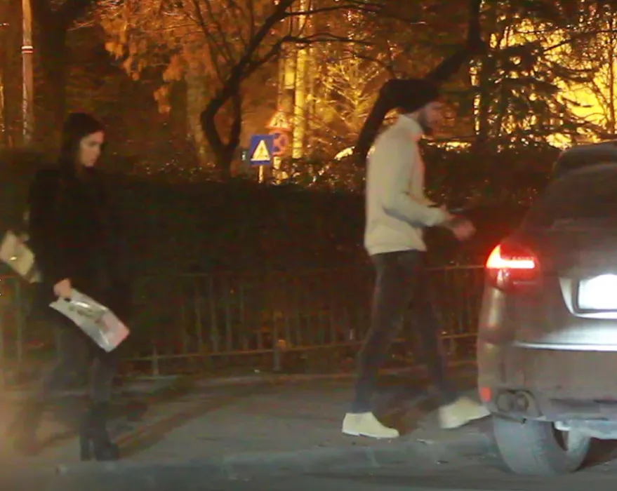 Mihai Bălașa și iubita lui se îndreaptă spre mașina fotbalistului