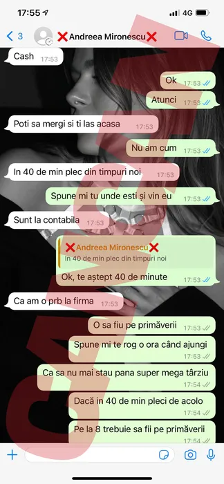 Discuția pe Whatsapp între Andreea Mironescu și reprezentatul firmei de unde modelul a cumpărat lenjerie de lux
