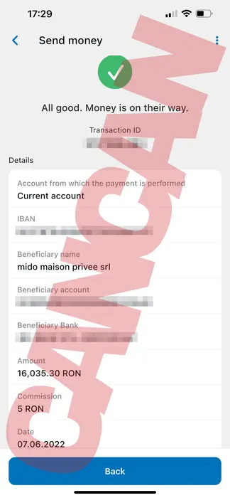 Dovada plății pe care Andreea Mironescu a arătat-o