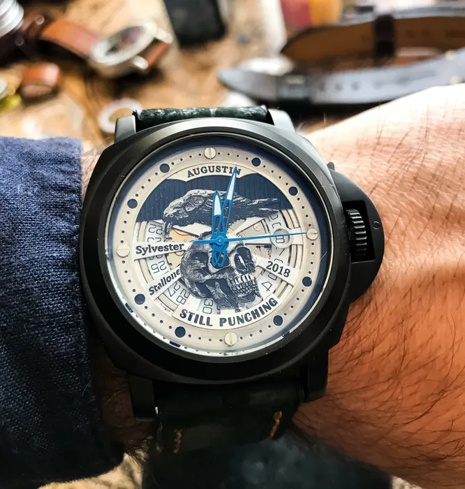 Actorul Sylvester Stallone a primit și el un ceas semnat de designerul român foto: Augustin Watches