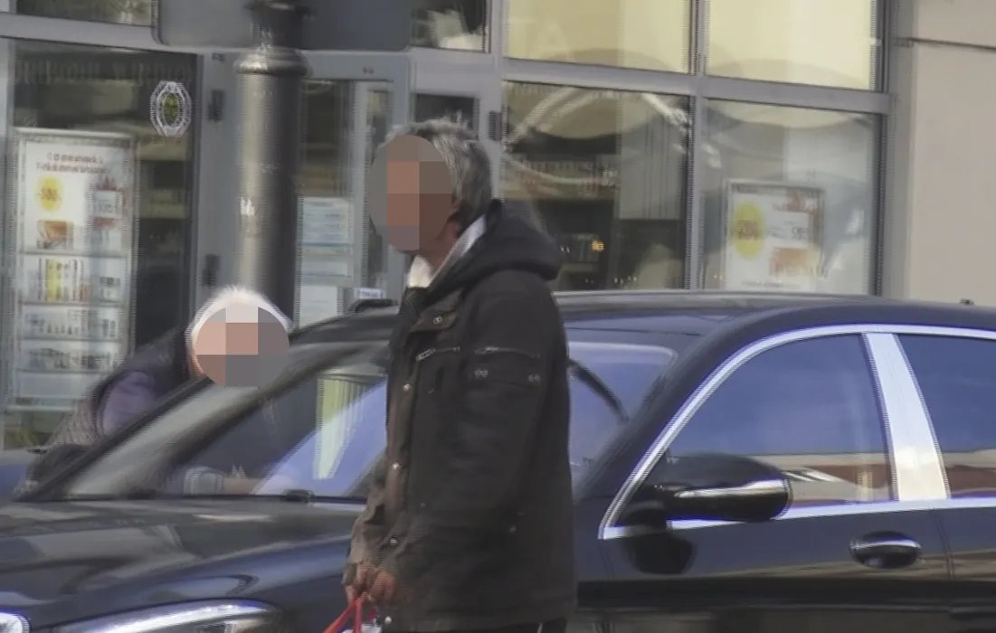 Cerșetorul pleacă dezamăgit de lângă mașină