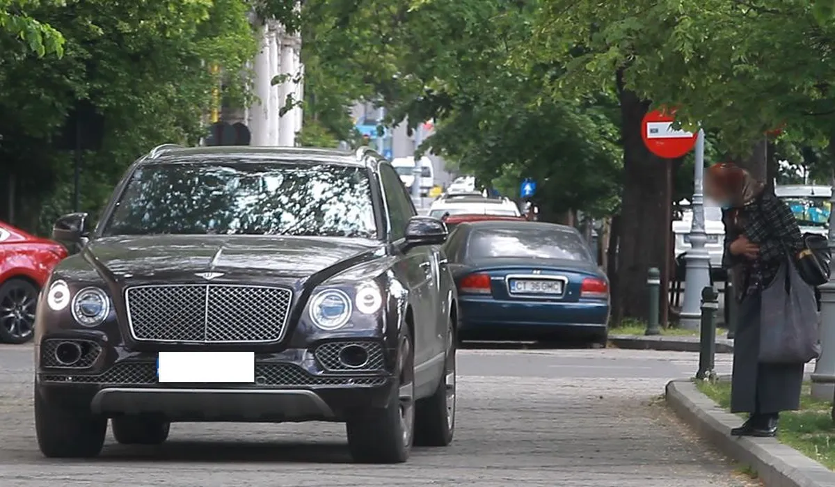 Femeia face o mică plecăciune când vede mașina lui Gigi Becali
