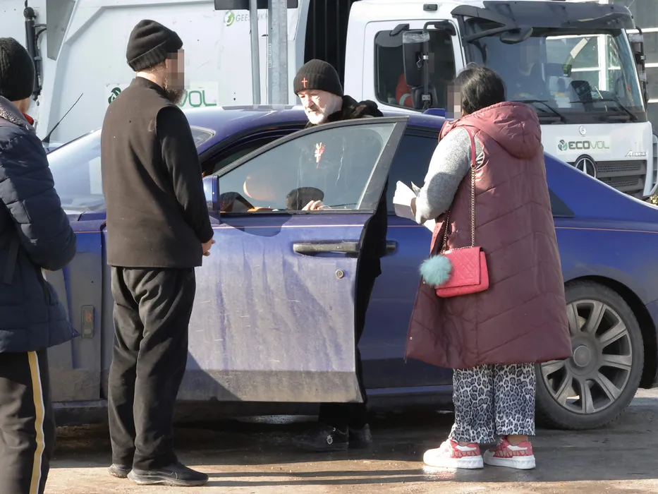 Gigi Becali s-a îndepărtat rapid fără să scoată un leu! Nevoiașii au înconjurat Rolls-ul, speranța era mare