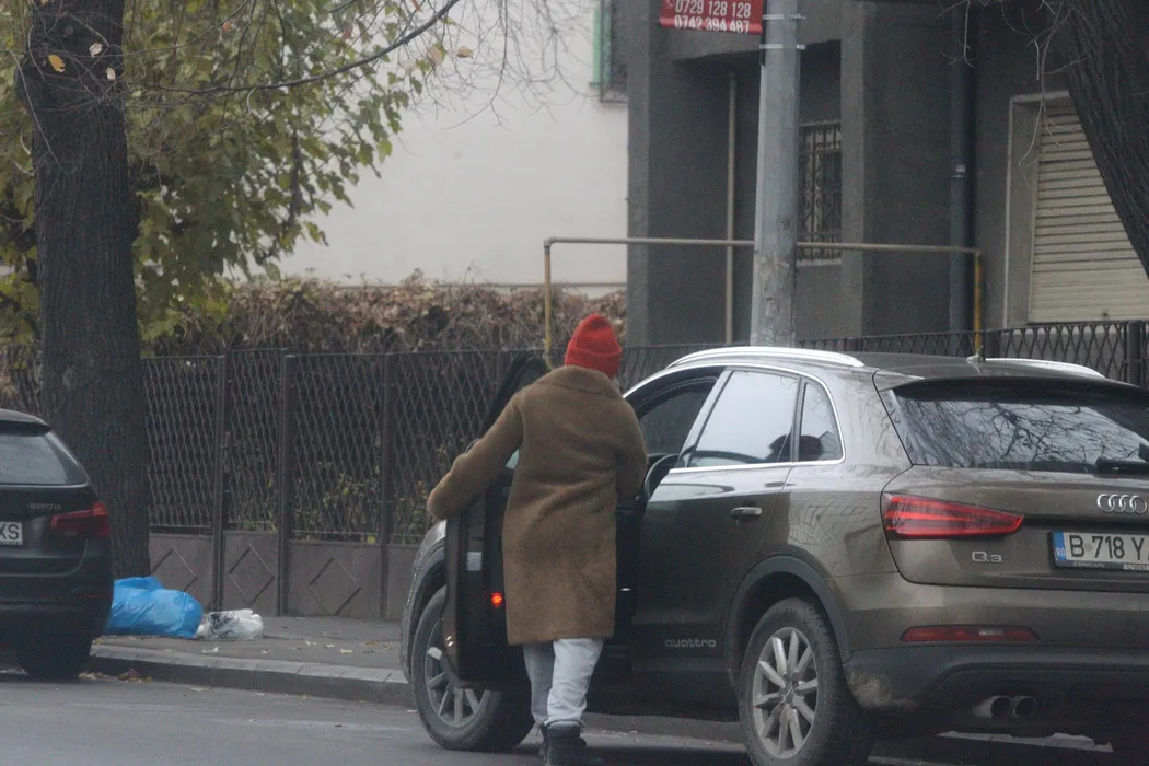 Gina Pistol, în timp ce intra în mașină după cumpărături