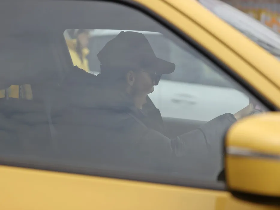 Lavinia Pârva cască în mașină, în drum către supermarket (Foto: CANCAN.RO)
