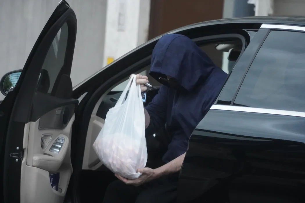 Horațiu Mălăele intră în mașină cu sacoșa plină