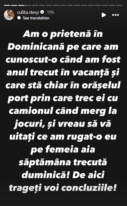 Postarea făcută de Culiță Sterp pe Instagram