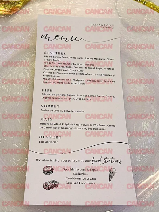 Așa arată meniul de la nunta lui Ianis Hagi / Sursă foto: Cancan.ro