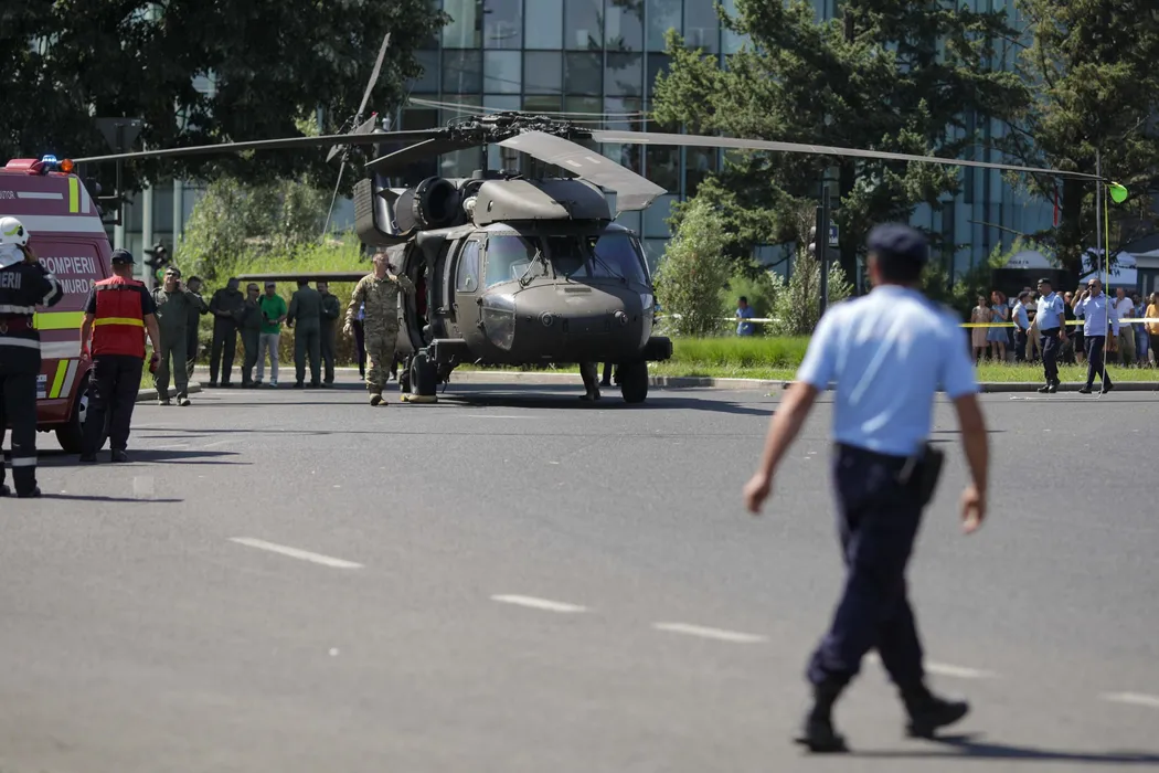 Imagini nedifuzate până acum cu aterizarea forțată a elicopterului Black Hawk american, în Piața Charles de Gaulle. Șoferii au crezut că nu văd bine!