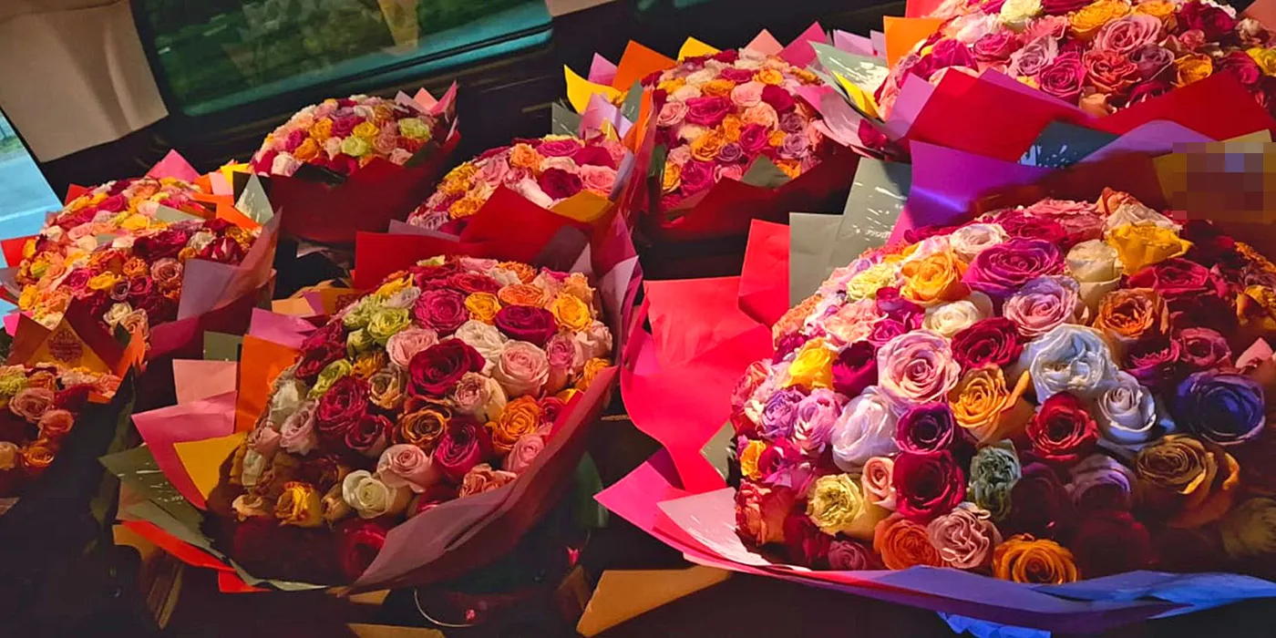 Imagini fabuloase: 1001 trandafiri i-au ”bătut” la ușă! Cine e afaceristul care și-a dat pe spate iubita voluptoasă, de Valentine’s Day