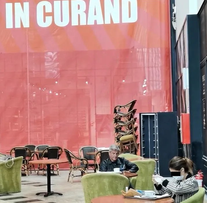 Dan Bittman, singur-singurel, la cafenea în mall