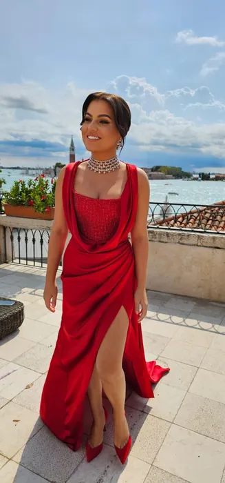 IMAGINI SPECTACULOASE la premiera de la Veneția. Doamna Ferrari, pe covorul roșu într-o rochie Cristina Săvulescu și cu 1 milion € la gât!