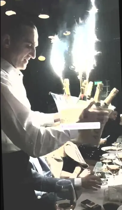 Ospătarii au adus șampanie Moet, ”asezonată” cu multe artificii