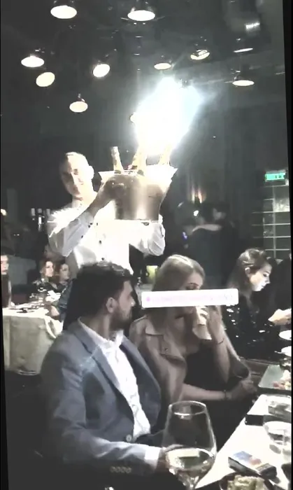 Ospătarii au adus șampanie Moet, ”asezonată” cu multe artificii