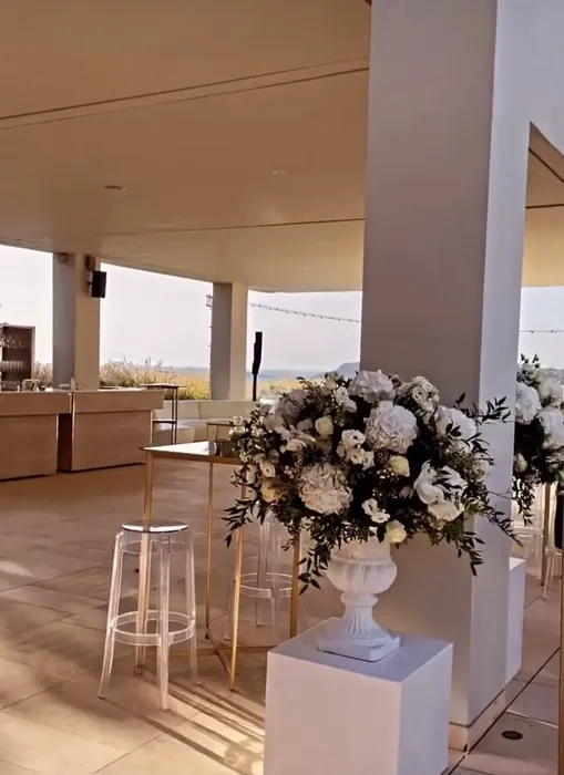 Restaurantul a fost decorat cu buchete de flori albe