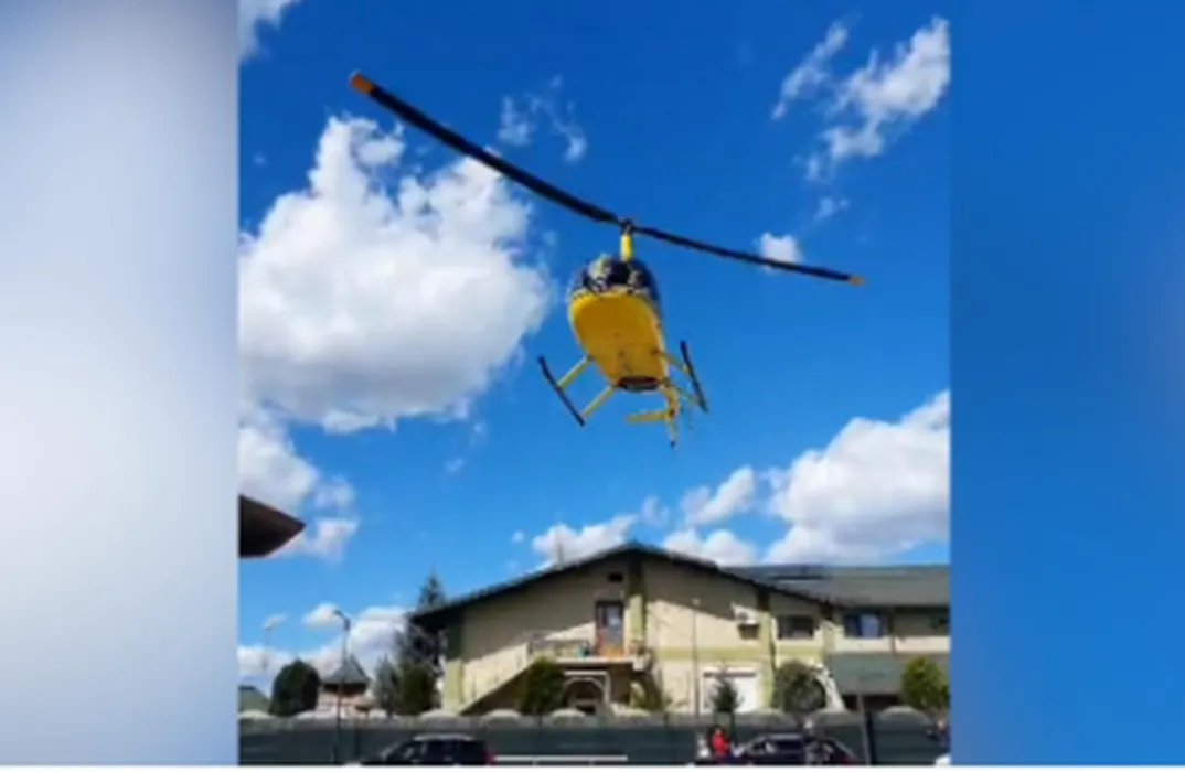 Imagini virale! Un elicopter a aterizat într-o benzinărie în Curtea de Argeș. Localnicii au rămas cu gura căscată: „A băgat GPL de 50 lei!”