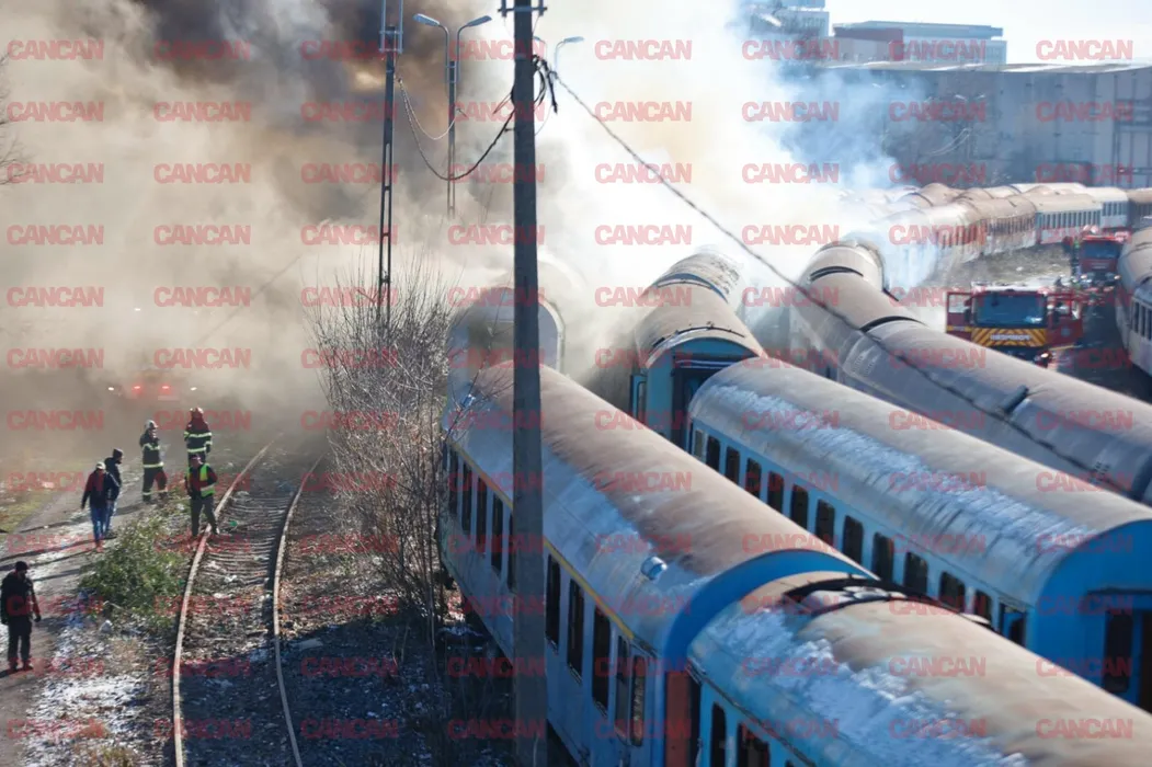 Incendiu masiv în stația București-Basarab. S-a emis avertizare Ro-Alert. Au luat foc mai multe vagoane dezafectate / VIDEO