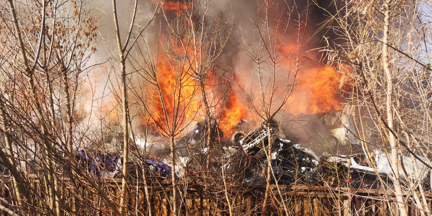 Incendiu puternic la un depozit de mașini din Voluntari! Autoritățile intervin de urgență