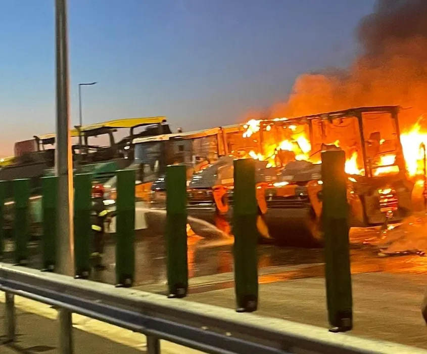 Incendiu puternic pe drumul expres Craiova- Pitești. Patru utilaje au luat foc