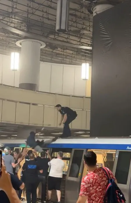 Polițiștii au intervenit pentru prinderea unui bărbat care a urcat pe garnitură, la metrou / sursă: captură video