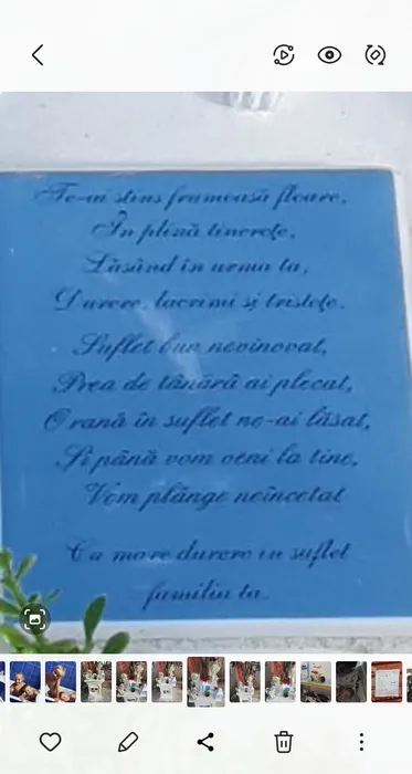 Între cele două statuete, familia a montat și o carte din piatră cu un mesaj emoționant foto: arhivă personală