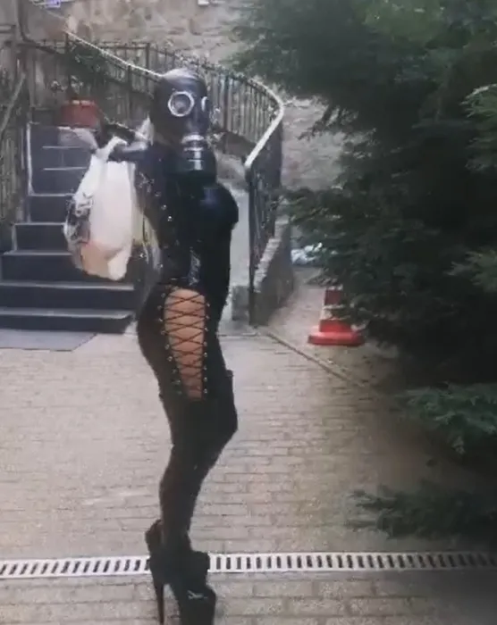„Înghițitoarea de flăcări” a ieșit din casă mulată în latex negru, cu masca de gaze pe față și…
