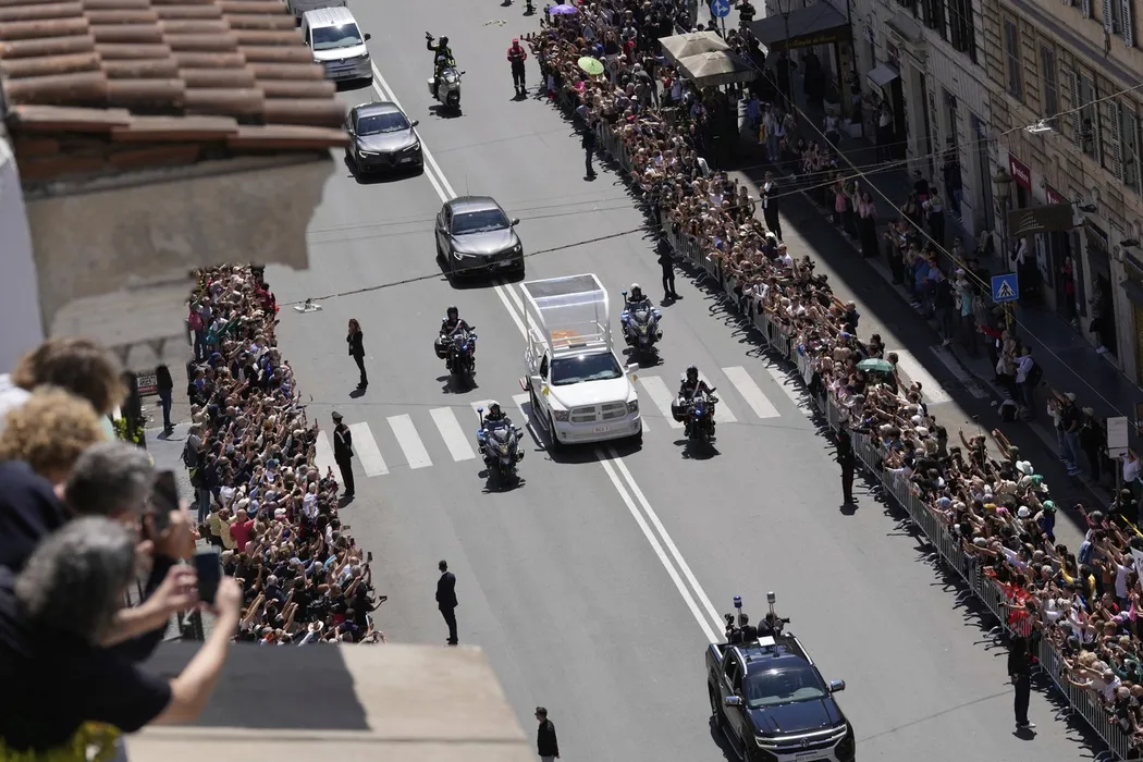 Sicriul cu trupul neînsuflețit al Papei Francisc a fost transportat cu un papamobil/ Sursa foto: Profimedia