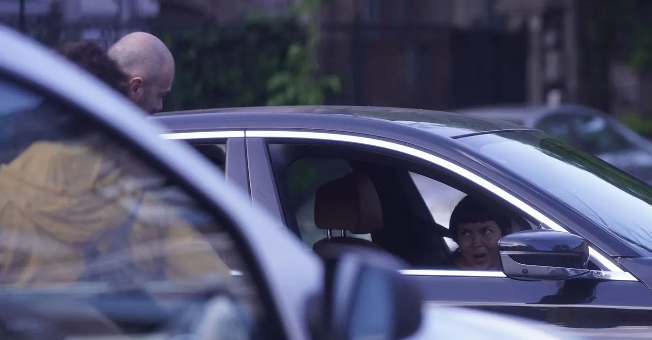 Inna discută cu șoferul personal, aflat în ziua liberă (Foto: CANCAN.RO)