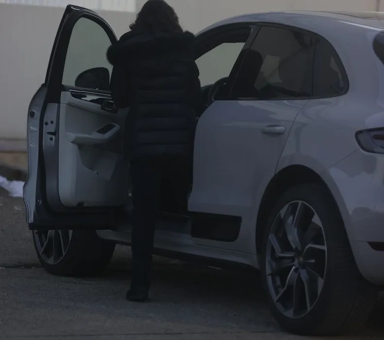 Geanina intră în noua mașină (SURSA FOTO: CANCAN.RO)