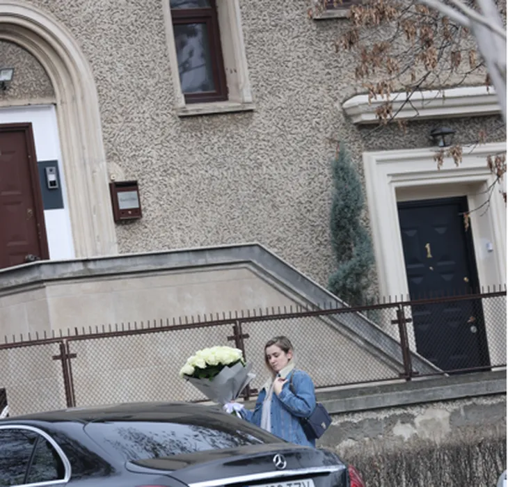 Irina Tănase a ”preluat” un imens buchet de trandafiri (Foto: CANCAN.RO)
