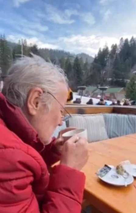 Irinel Columbeanu servește o cafea la Nuba, în Poiana Brașov