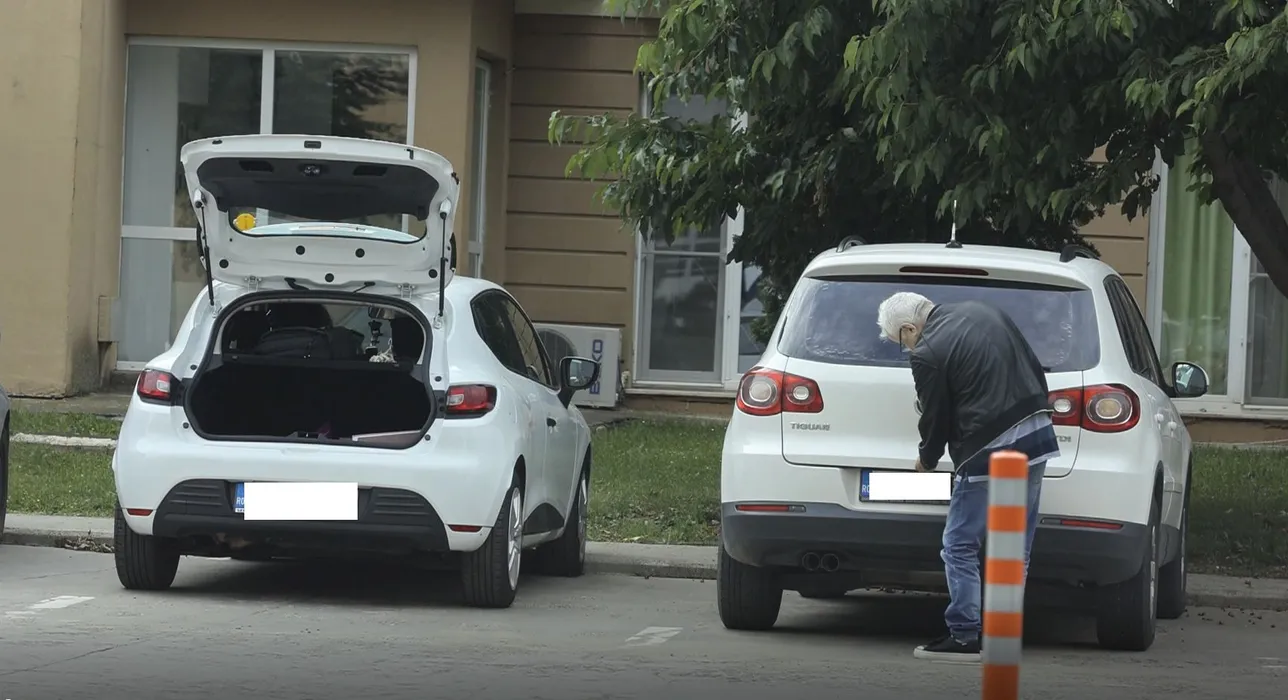 Irinel Columbeanu confundă mașinile și trage de un portbagaj străin (Foto: CANCAN.RO)