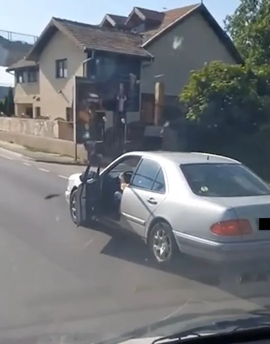 Irinel Columbeanu circulă cu ușa deschisă larg, spre stupoarea șoferilor din trafic (Foto: Captură)