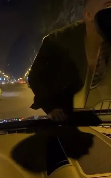 Jador a condus cu un bărbat suit pe capotă