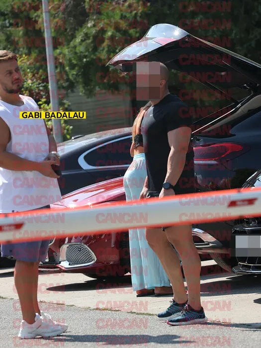 Bădălău și amicul, la două vorbe, în timp ce Bianca își vede de treabă la mașină (Foto: CANCAN.RO)