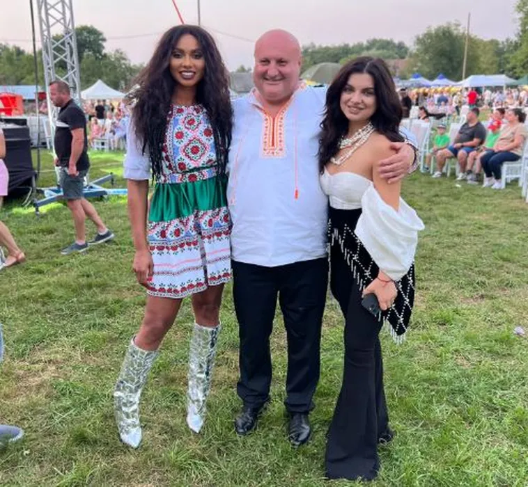 Laurette, alături de primarul comunei Săpânța și de colega ei de scenă